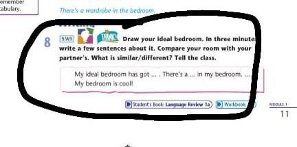 My ideal bedroon has got sofa. There's a TV in my bedroom. My bedroom is cool!