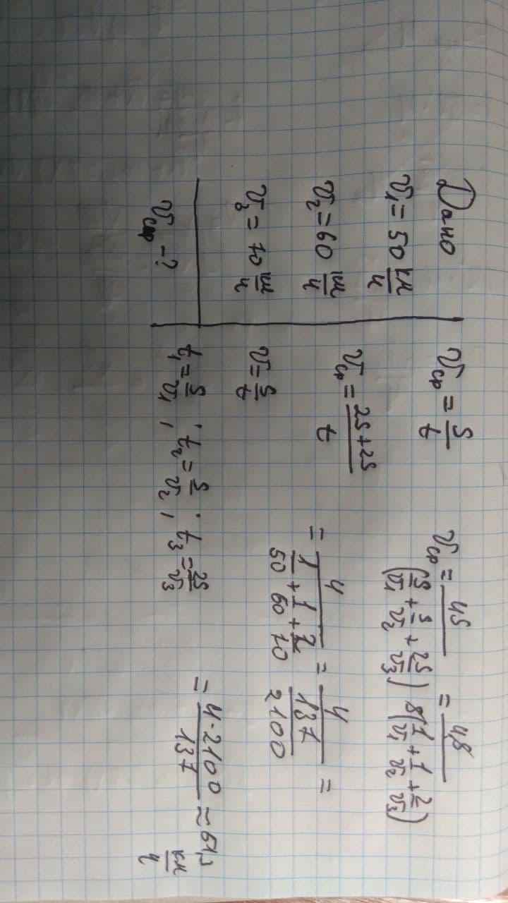 Vcp = So / t = 4*S / (27.4*S / 420) = = 61.3 км/ч