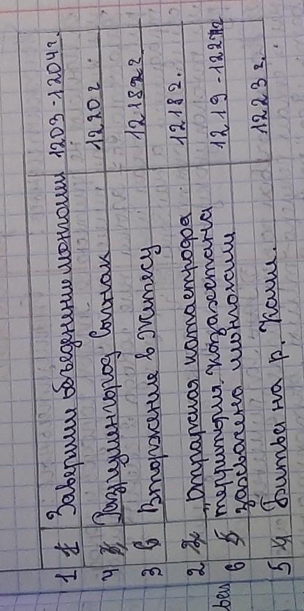 (там цифры , это порядок событий , писала все по своей тетради за 6 класс , нам нужно было сделать таблицу )
