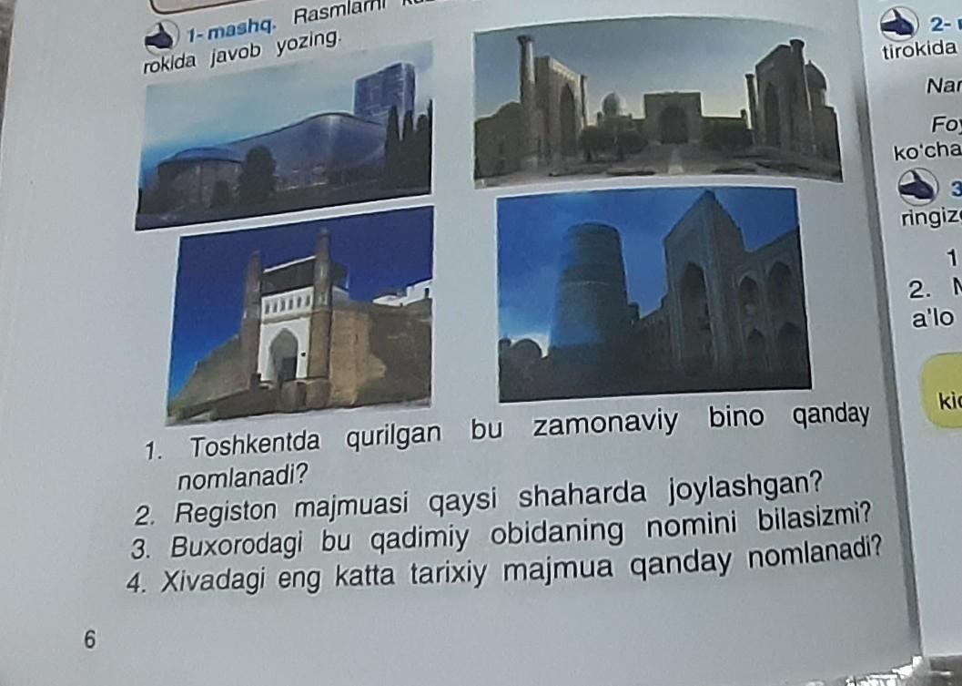 Ответ: 1)Toshkenda qurilgan bu zamonaviy bino Toshkent citi dep nomlanadi