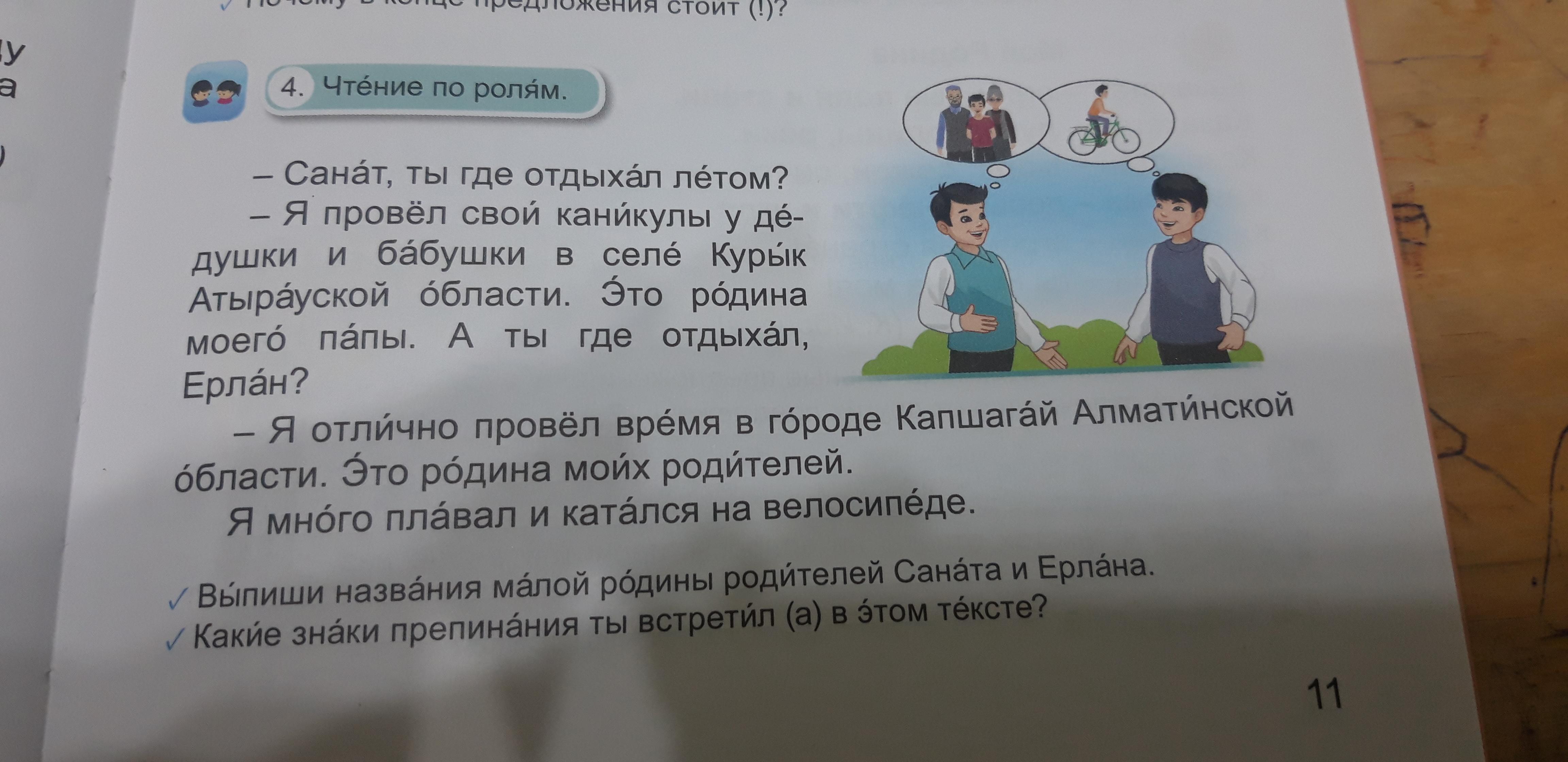 Выпиши названия малой родины родителей Саната и Ерлана.