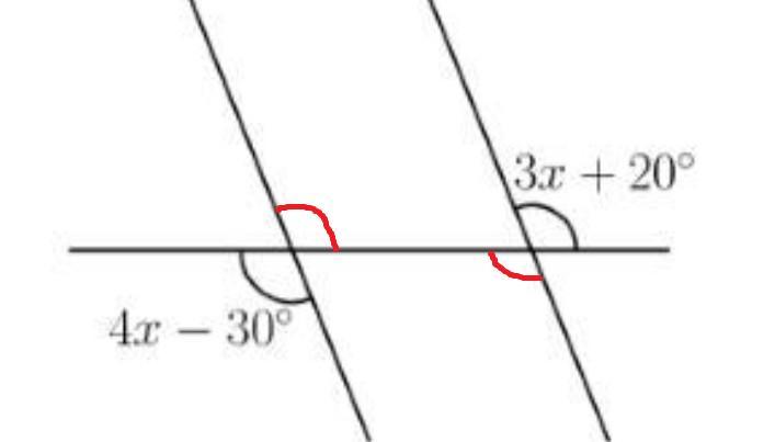 Углы на рисунке равны (обозначено на фото), поэтому составляем уравнение и решаем его: