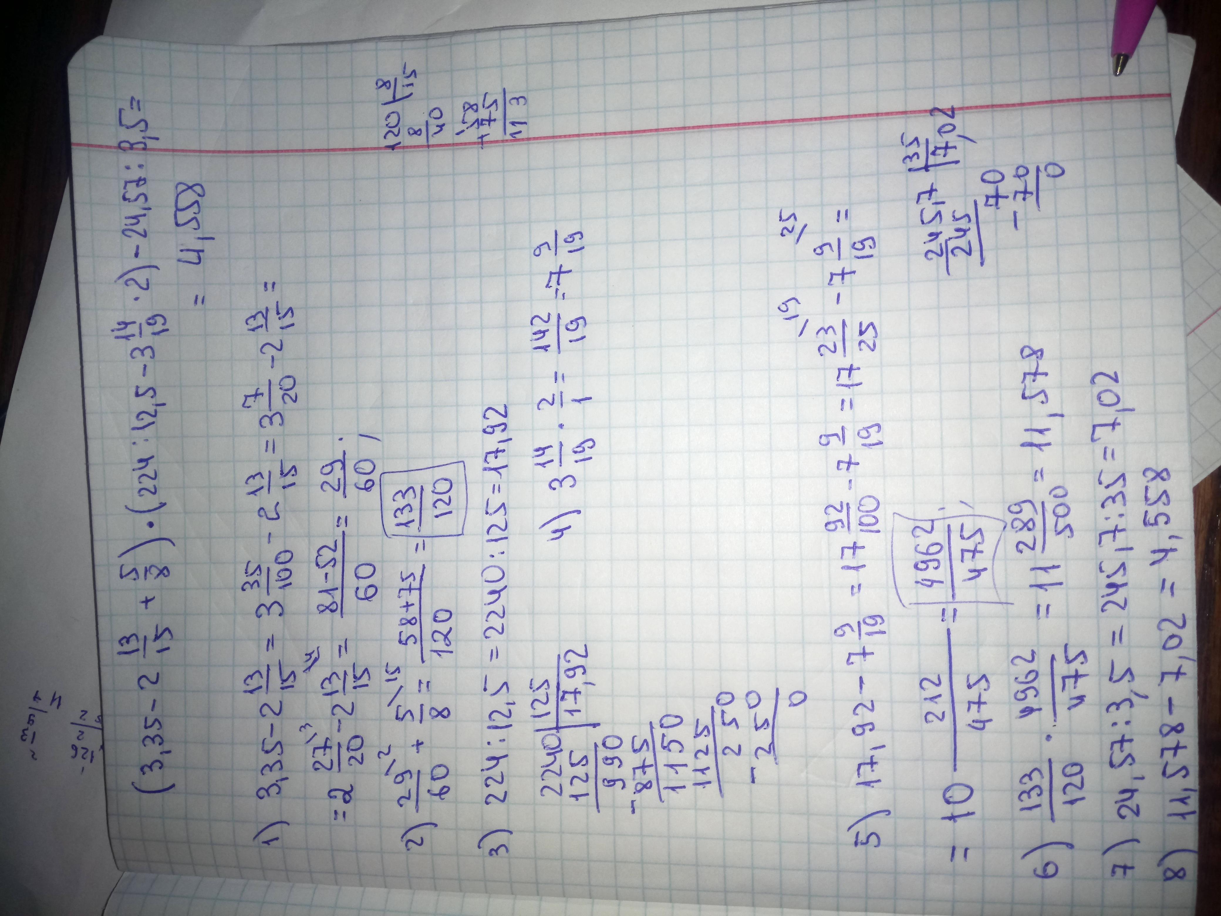 (3,35-2 13\15+5\8)*(224:12,5-3 14\19*2)-24,57:3,5 решить по действиям.