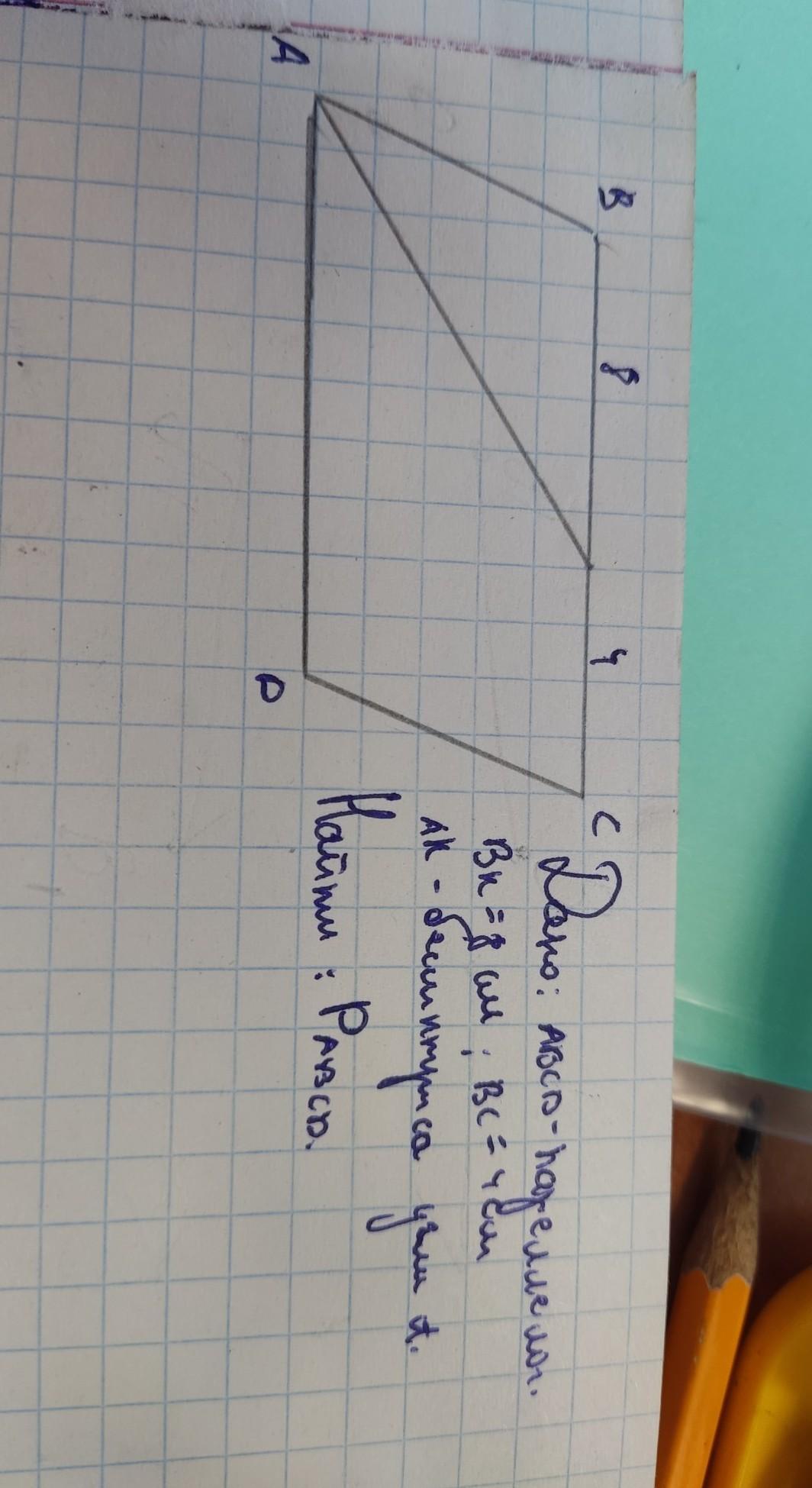 Дано: абсд-параллелограмм. BK = 8, BC = 4. AK - биссектриса угла А.