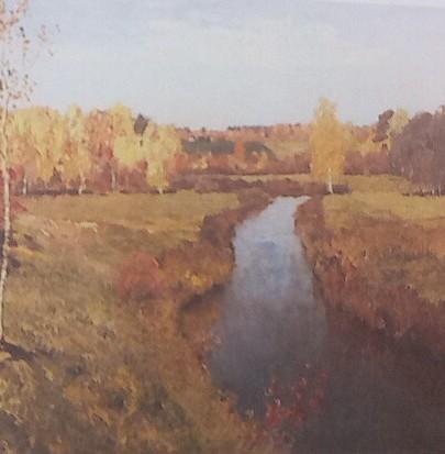 залатая осен я вижу красивый пейзаш русского леса На передней плане картины я вижу осенниь лес, длинную извилистую речку. вода в речке чистоя, вней отражается голубое небо. воздух в лесу чистый приятный.