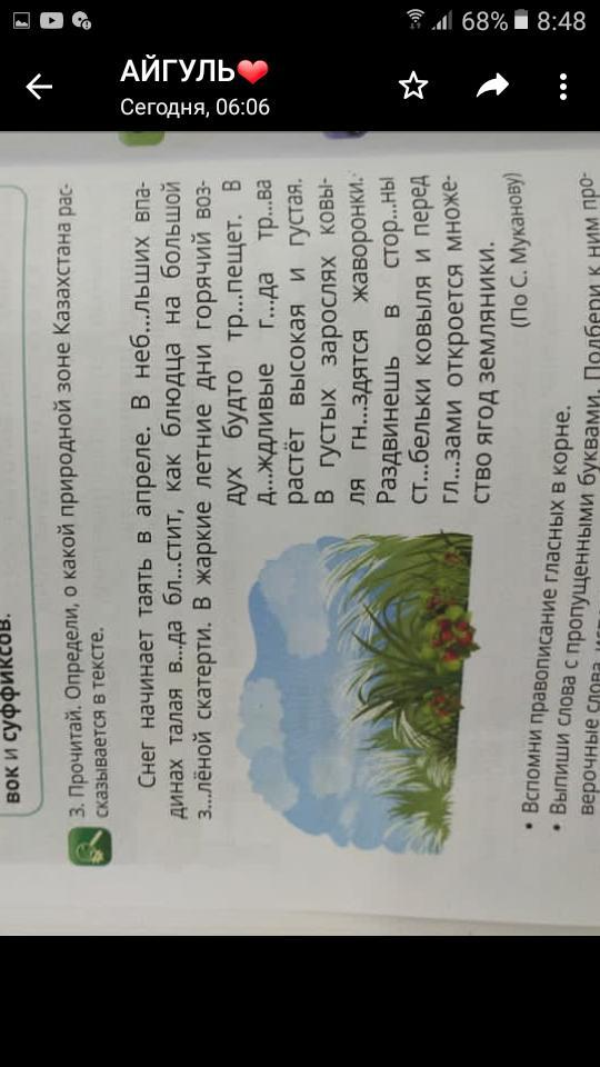 Снег начинает таять в апреле.В небольших впадинах талая вода блистит,как блюдца на большой зелёной скатерти.В жаркие летние дни горячий воздух будто трепещит.В дождливые года трава растёт высокая и густая.В густых зарослях ковыля гнездятся жаворонки.Раздвинешь в стороны стебельки ковыля и перед глазами откроется множество ягод землянки.