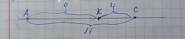 Три точки А, С, К лежат на одной прямой. Известно, что КС = 4 см, АС = 11 см. Найдите длину отрезка АК, если известно, что точка К лежит между точками А и С
