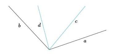 Лучи a и b образуют широкий угол рассеивания, равный 170°. Лучи c и d образуют узкий угол рассеивания, равный 72°. Чему равна градусная мера промежуточного угла рассеивания, который образуют биссектрисы углов (bd) и (ac)? Ответ:° .