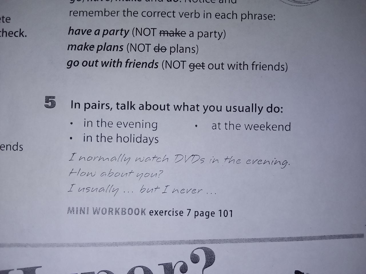 1 5 В парах поговорите о том, чем вы обычно занимаетесь: вечером, в праздничные дни, в выходные.