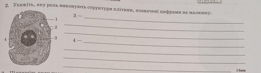 укажіть яку роль виконують структури клітини, позначені цифрами на малюнку