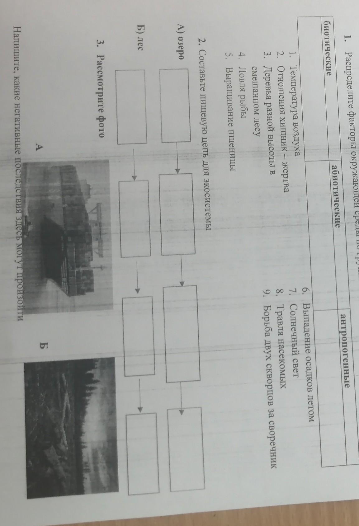 Б ( плохо видно,поэтому думаю,что тут вырубка леса ) Вырубка леса - негативные последствия : нарушение естественной пищевой цепи, многим животным трудно найти укрытия, голодание, вымирание почвы( возможен риск при вырубке), концентрация чистого воздуха сокращается.