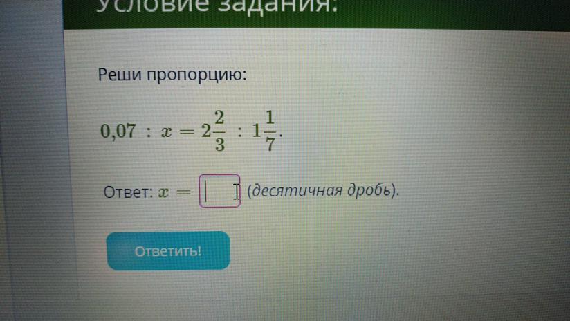 0,07 : х = 2. 2/3 : 1. 1/7