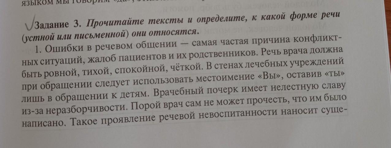 Прочитайте текс и определите, к какой форме речи( устной иои письменной) они относятся