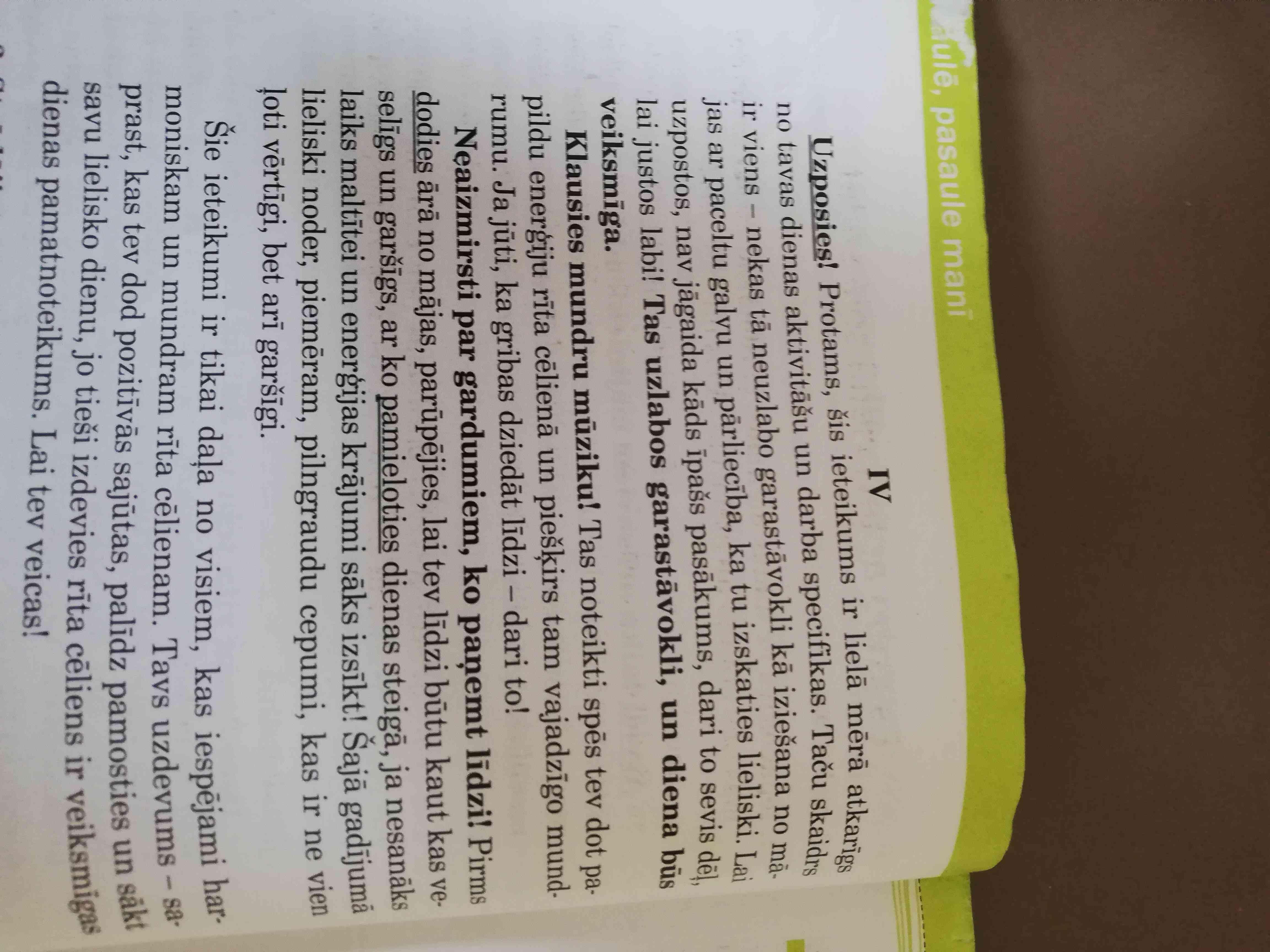 Помогите пожалуйста зделать задание по латышскому! 4. Katras rindkopas sākumā izceltos padomus pārveidojiet vajadzības izteiksmē!