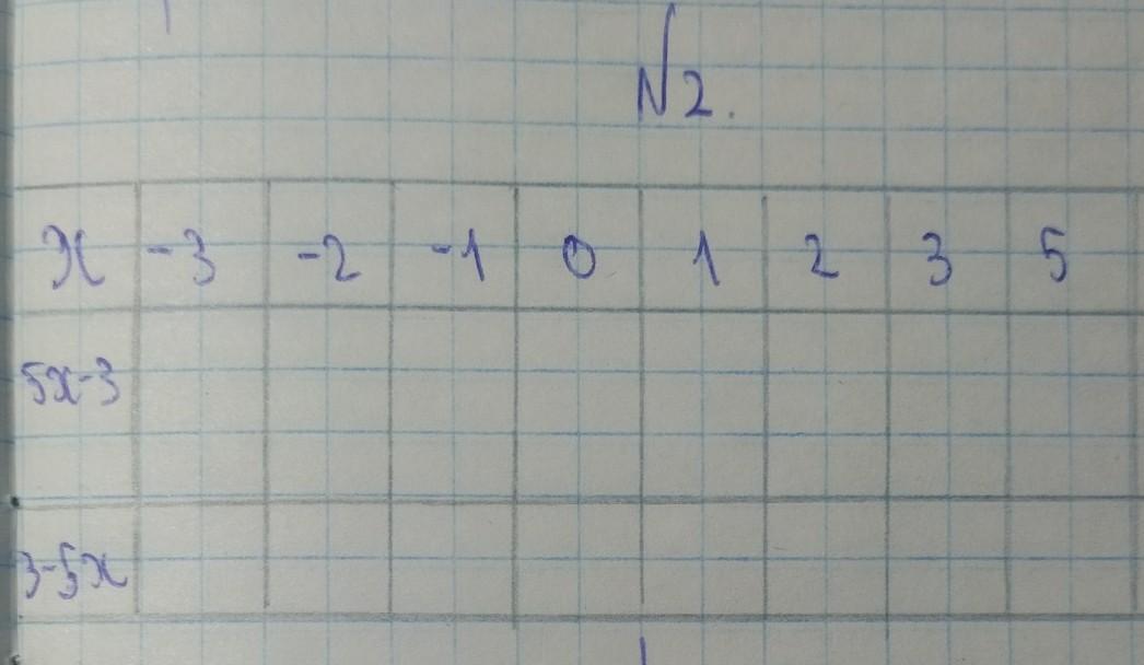 помогите пожалуйста. Таблица : x -3, -2, -1, 0, 1, 2, 3, 5 а под x - 5x -3 и ниже 3-5x