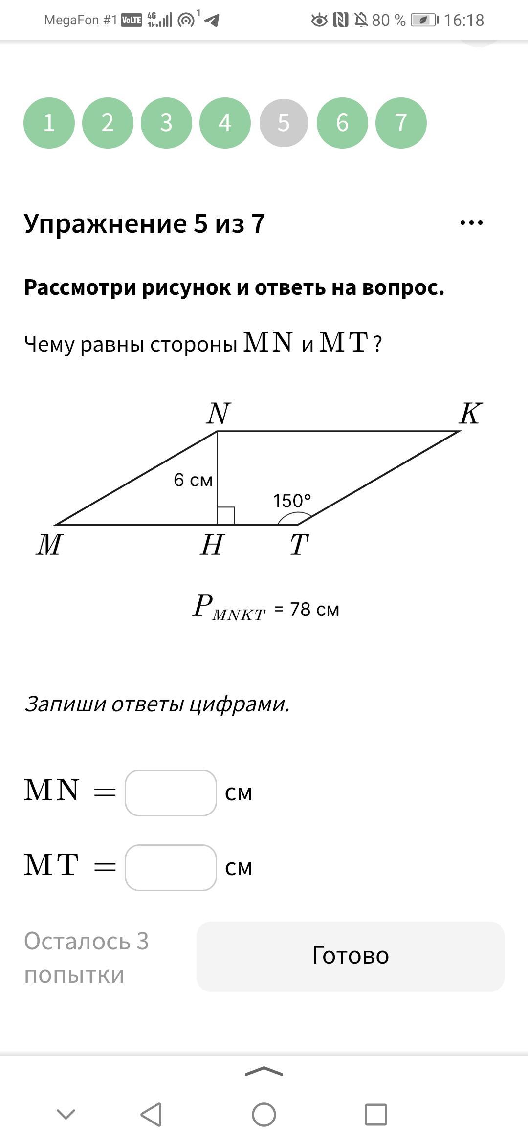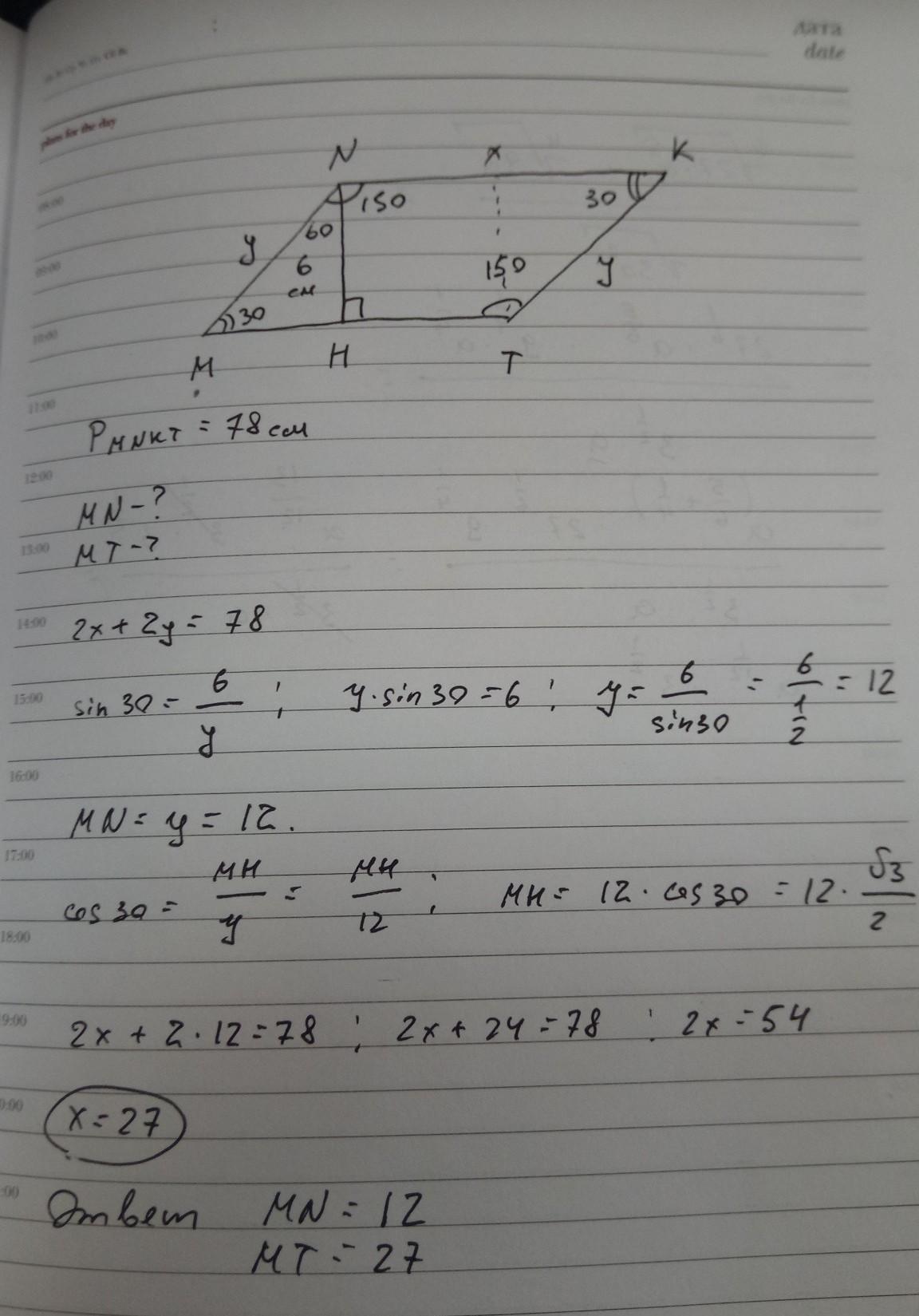Ответ: МН = 12 см, МТ = 27 см.