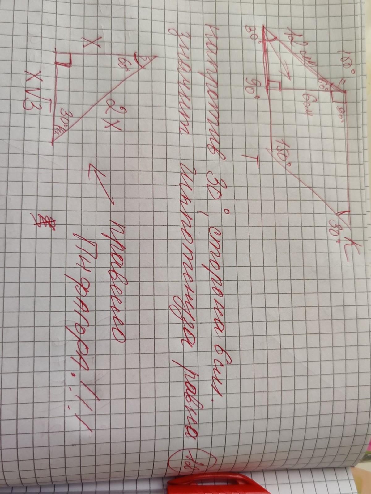 используем обычное правило Пифагора со сторонами 30° , 60° и 90°.