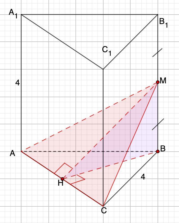 Дано:A..C1– Правильная призма, Секущая площадь проходит через прямую AC и точку M. Найти: Sсеч*
