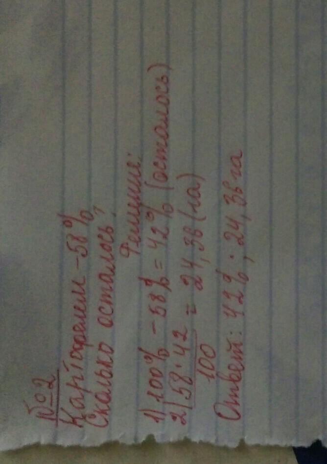На 58% территории, занимаемой картофелем, сделали прореживание. На скольких гектарах сделано прореживание и сколько еще осталось?