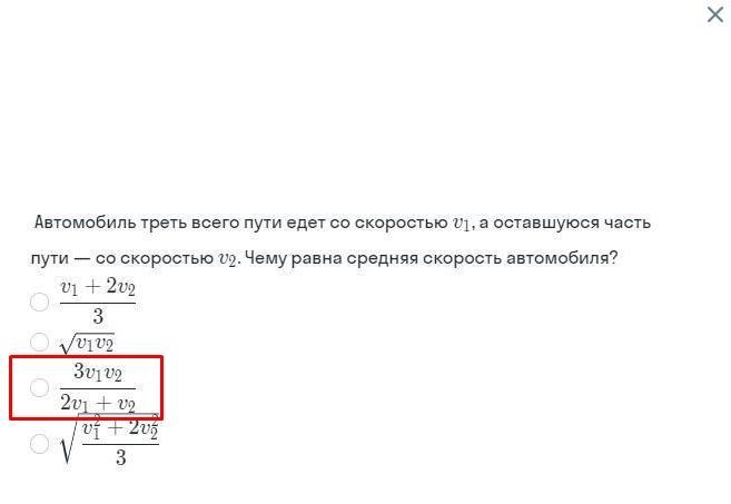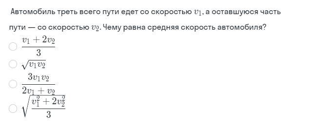 средняя скорость S/t = S/( S/(3*v1)+2S/(3*v2)) = 3v1*v2/(v2+2v1)