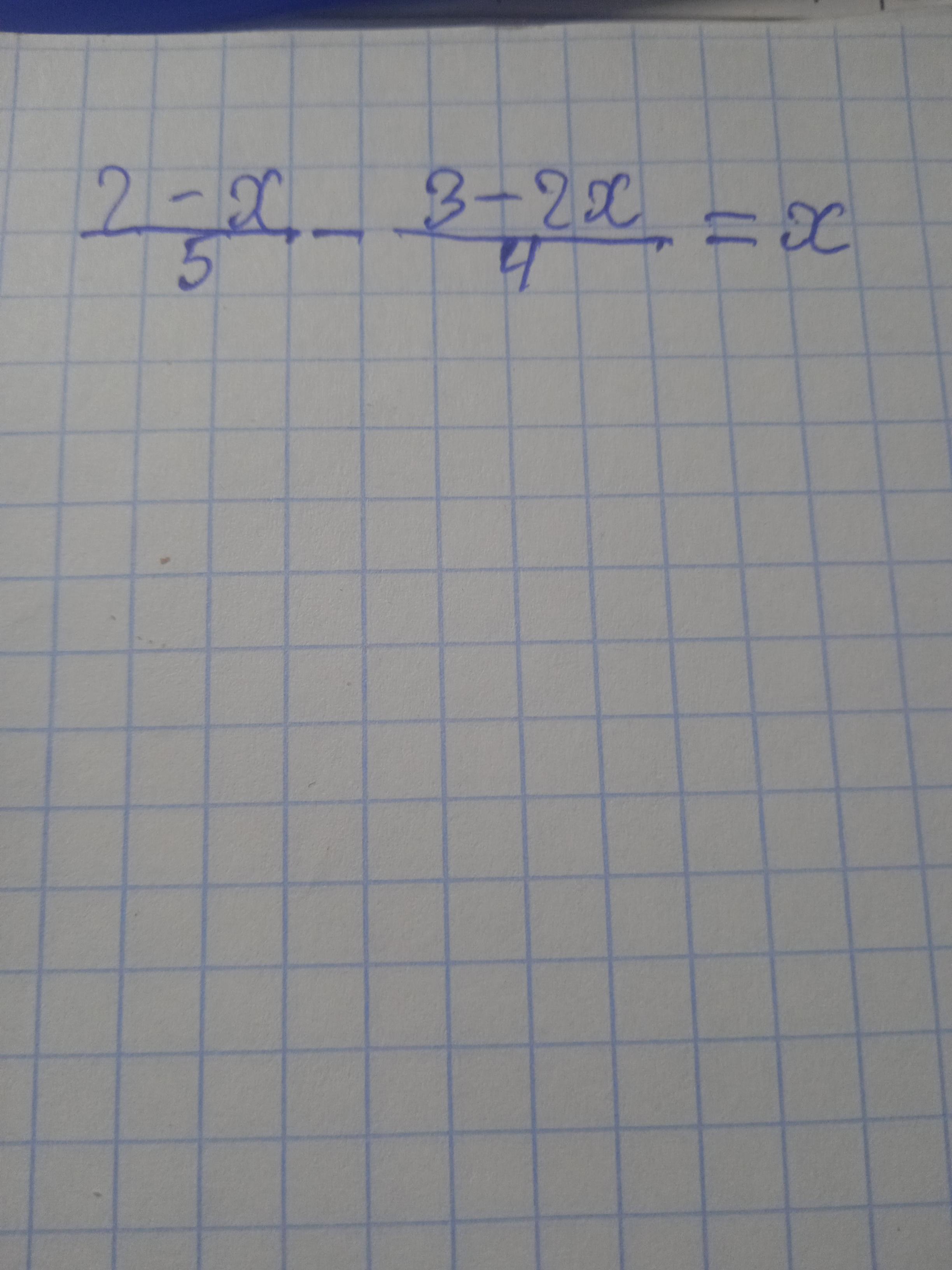 (2-x)/5 - (3-2x)/4=x ||* 20