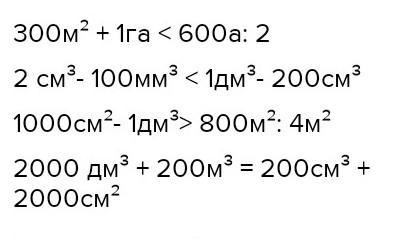 2 см³ - 100 мм³ > 1 дм³ - 200 см²