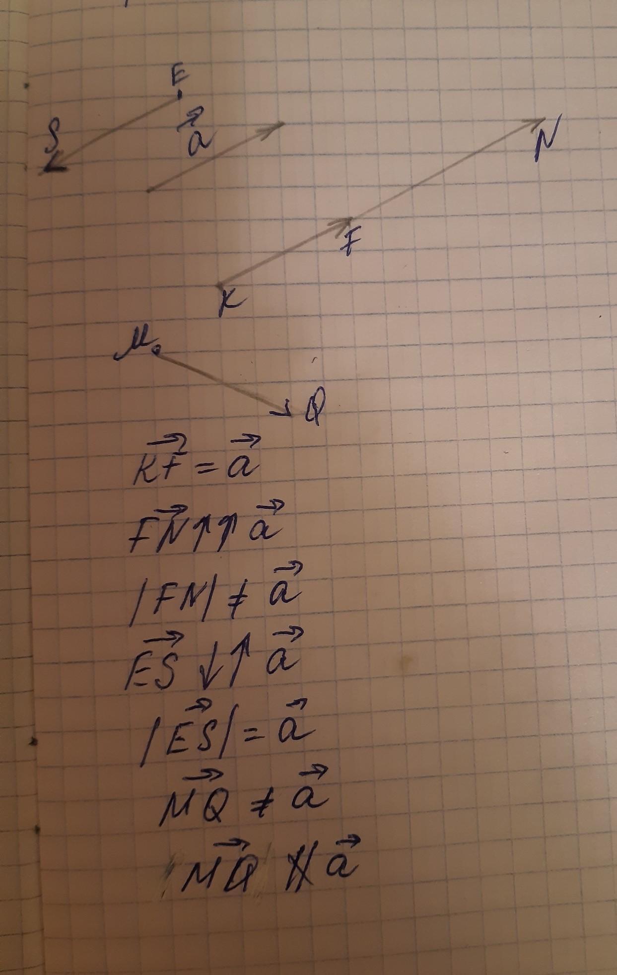Постройте вектор a. Отметьте точки M , E , F, K не принадлежащие вектору а . От точек M E F K отложите векторы: