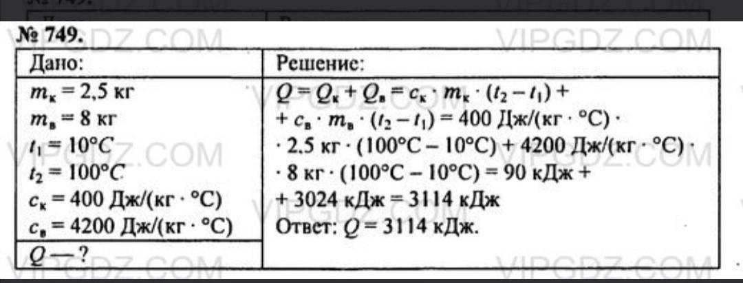 медная кастрюля 2,5 кг налито 8 кг воды при 10 градусов Цельсия чтобы воду в кастрюле нагреть до кипения . удельная теплота медь 3800 дж