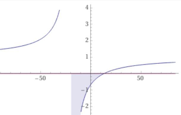 Если знаменатель меньше -19,8, то числитель и знаменатель станут отрицательными, а дробь больше нуля.