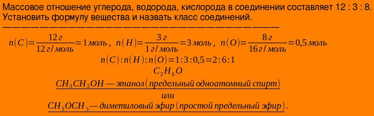 Маса Карбону відноситься до маси Гідрогену та Оксигену як 12:3:8. Визначте формулу сполуки, напишіть структурну формулу та назвіть її клас.