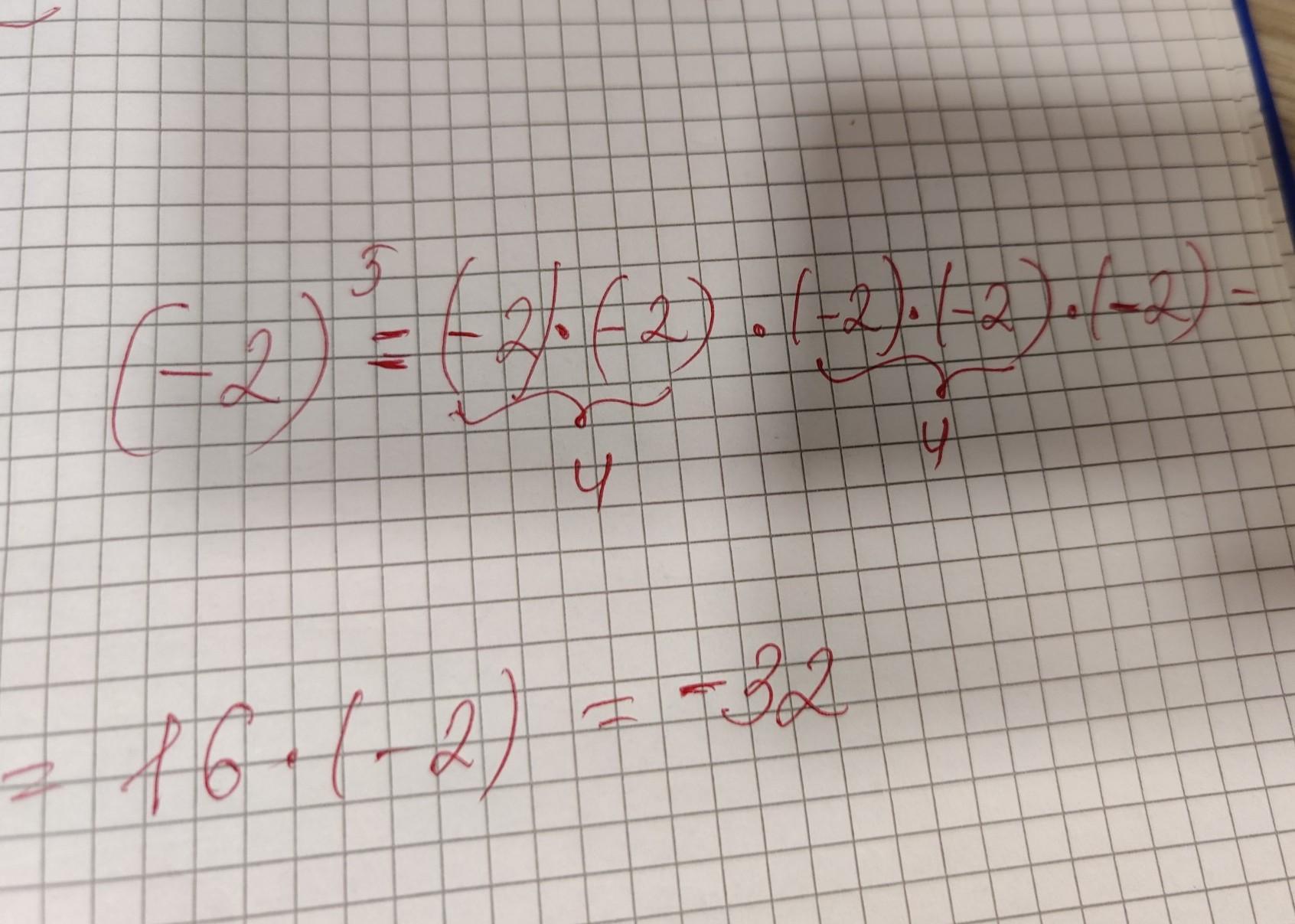 Потому что если мы -2 умножаем пять раз на самого себя, то ответ выходит -32. Именно то, что нам нужно.