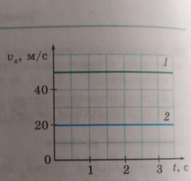 На рисунке изображены графики зависимости проекции скорости на ось x от времени для двух тел, движущихся вдоль оси x. Какой путь пройдёт каждое из этих тел за 3с?