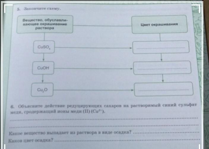 6. Редуцирующие сахара восстанавливают растворимый синий сульфат меди, содержащий ионы меди(II) [Сu 2+]