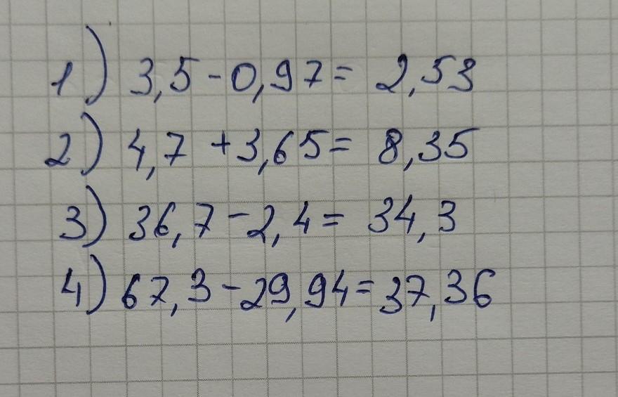 3) 36,7 - 2,4 = 34,3