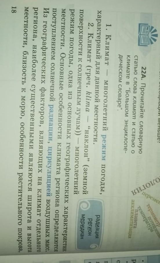 22Б. Сравните, какие признаки климата названы в словаре и энциклопедии. В каком тексте информации о климате больше? Почему? К какому стилю речи относятся эти тексты? Назовите непонятные слова.