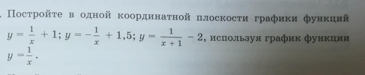- гипербола, получена из гиперболы у=1/х путём отображения её относительно оси ОХ , а затем сдвига её вдоль оси ОУ на 1,5 единицы вверх .