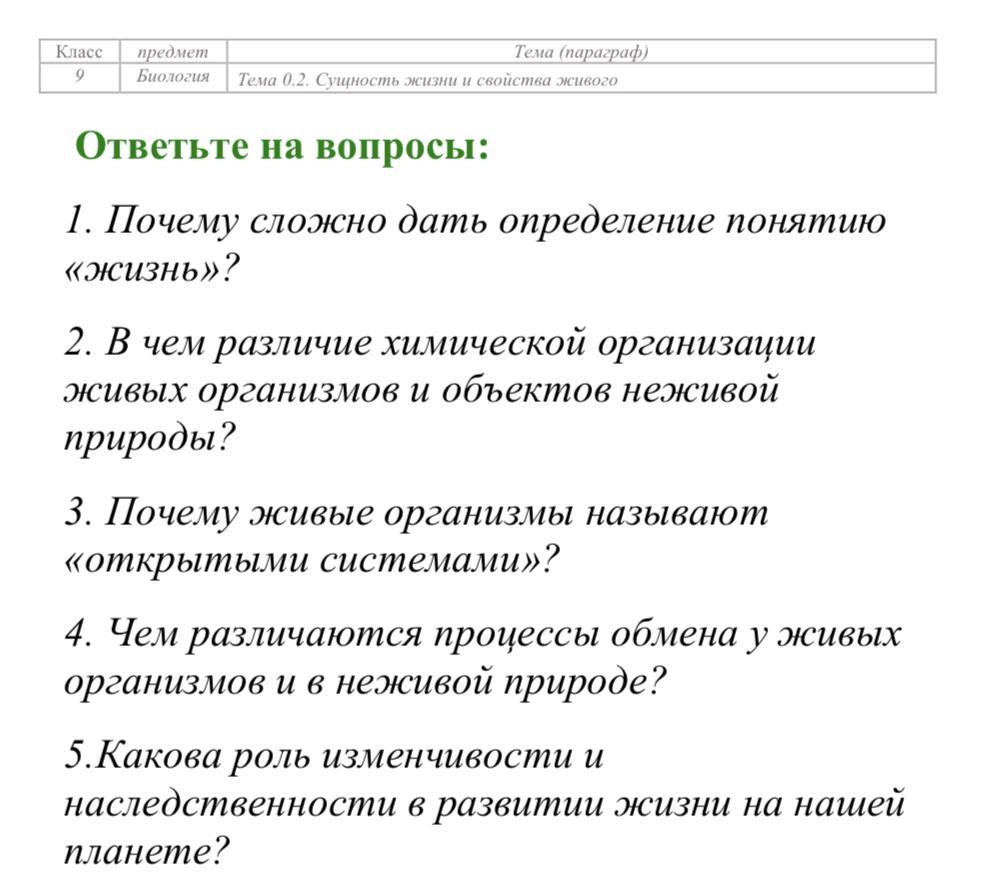 1. Живые организмы обладают признаками, отсутствующих у большинства неживых систем,но среди этих признаков нет ни одного такого,который был бы присущ только живому (пример: для живых организмов