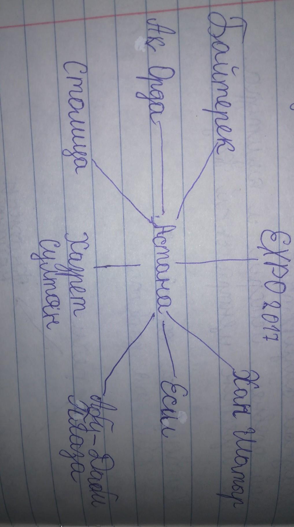 Ответ:Президент,Бәйтерек,Достопримечательности,Столица,Город,Казахстан,Гордость,Многоязычие