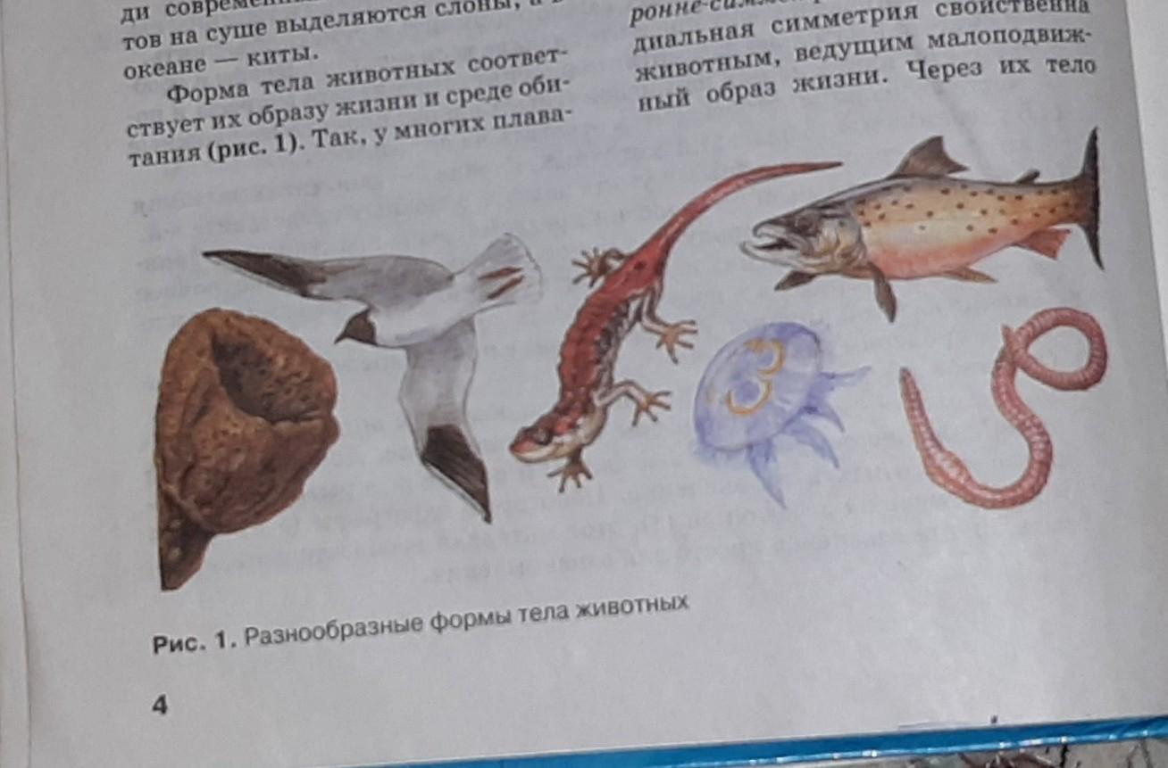 Опишите форму тела животных изображённых на рисунке 1. и объясните какие у них имеются приспособления к разным образу жизни.