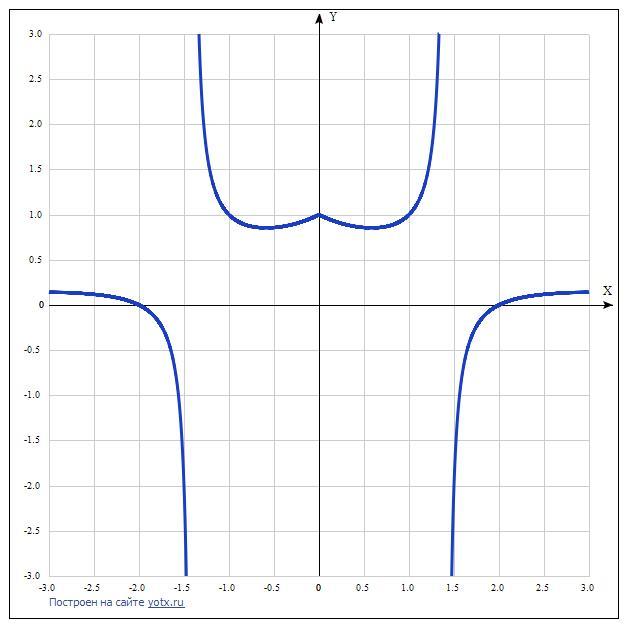 Учесть точки разрыва функции при х = ± √2 ≈ ±1,41.