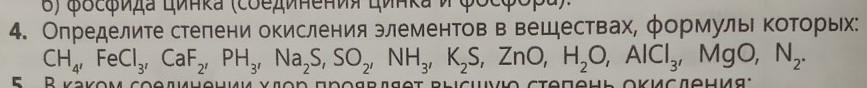 4. Определите степени окисления элементов в веществах, формулы которых: (все на фото)