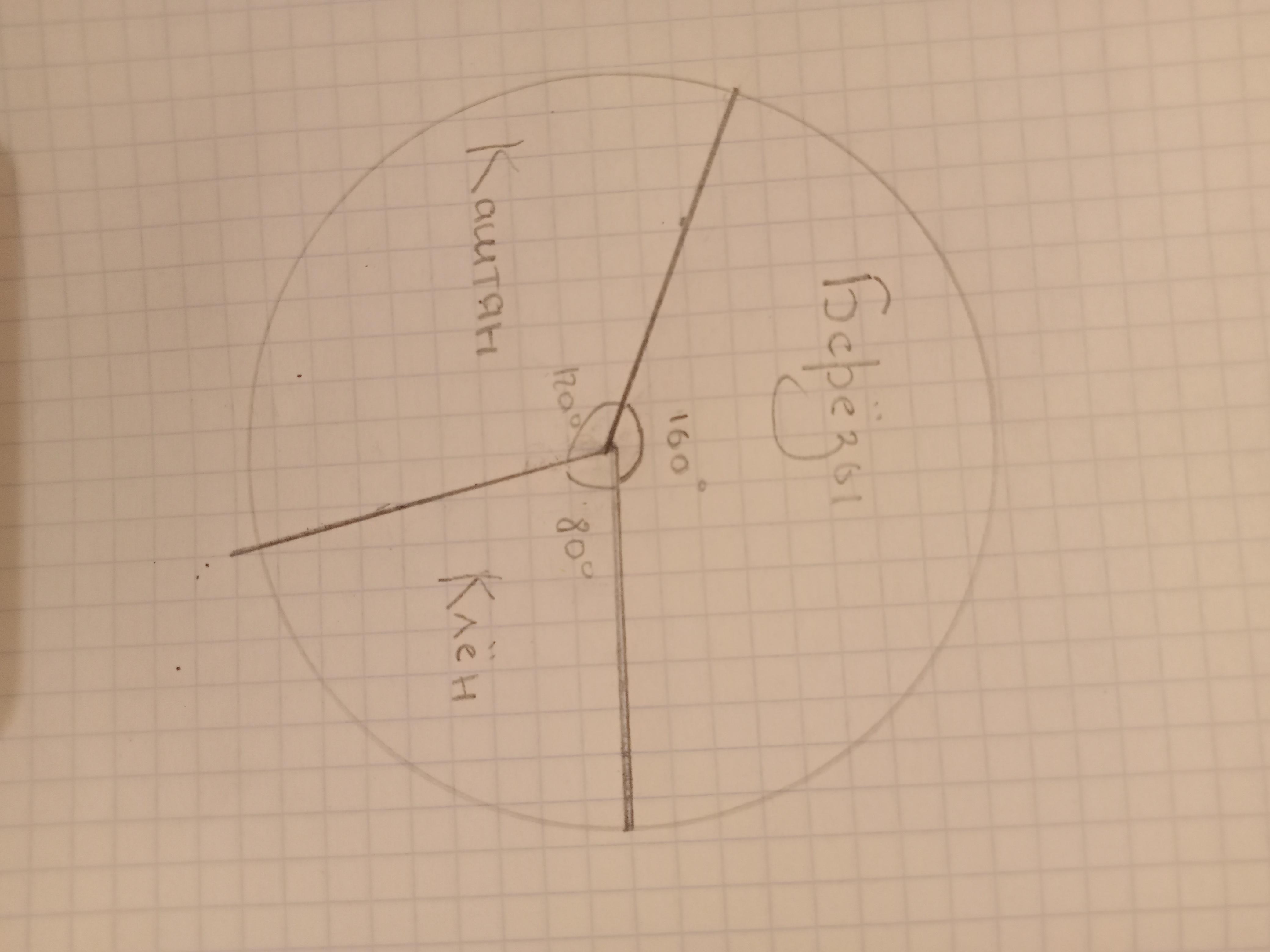 Вокруг школы посадили 36 деревьев: 16 берёз, 8 клёнов, а остальные каштаны. Постройте круговую диаграмму по этим данным