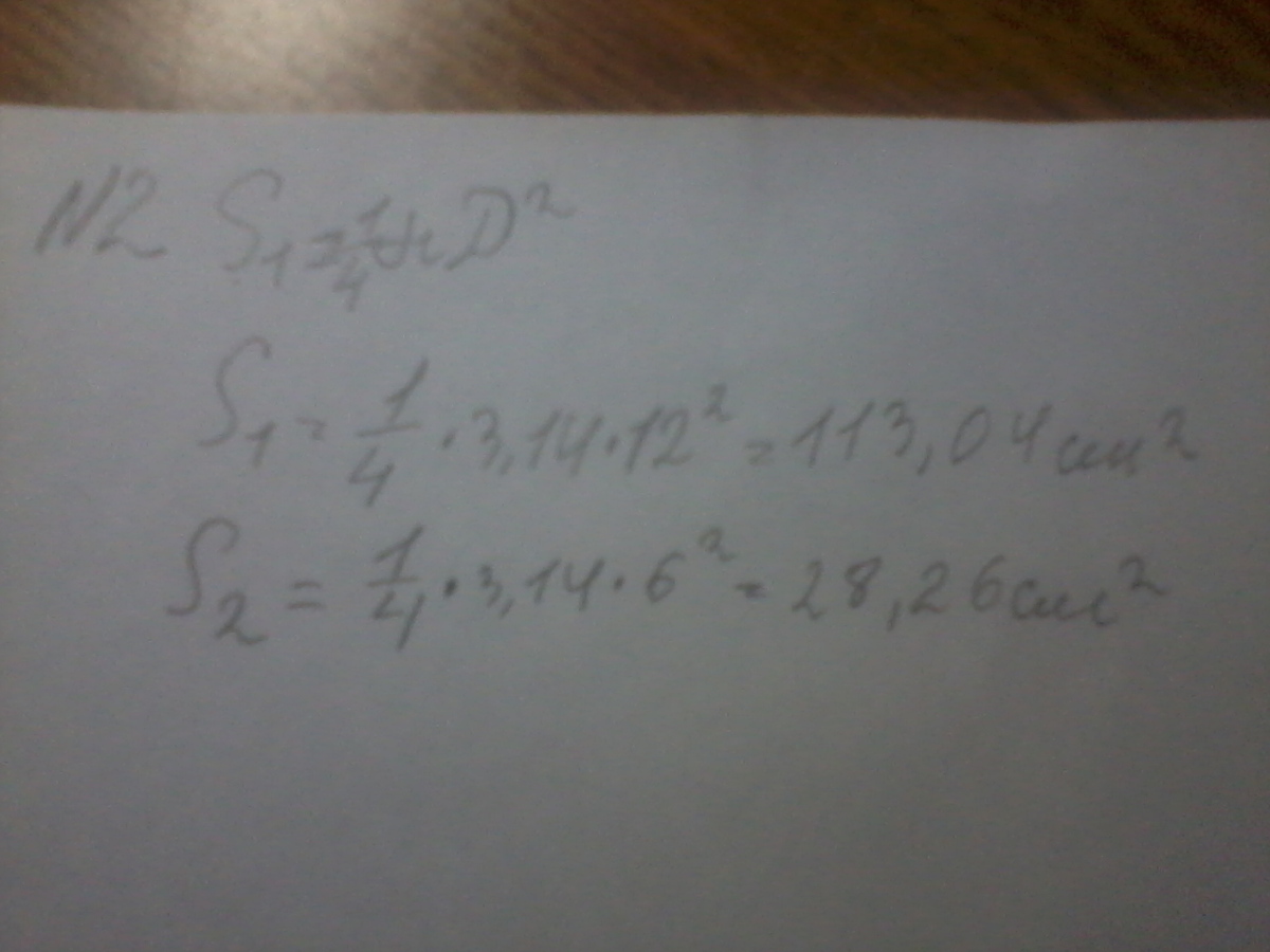 Найдите площадь круга, у которого диаметр равен 12 см. Найдите площадь круга, у которого диаметр в 2 раза меньше диаметра первого круга.