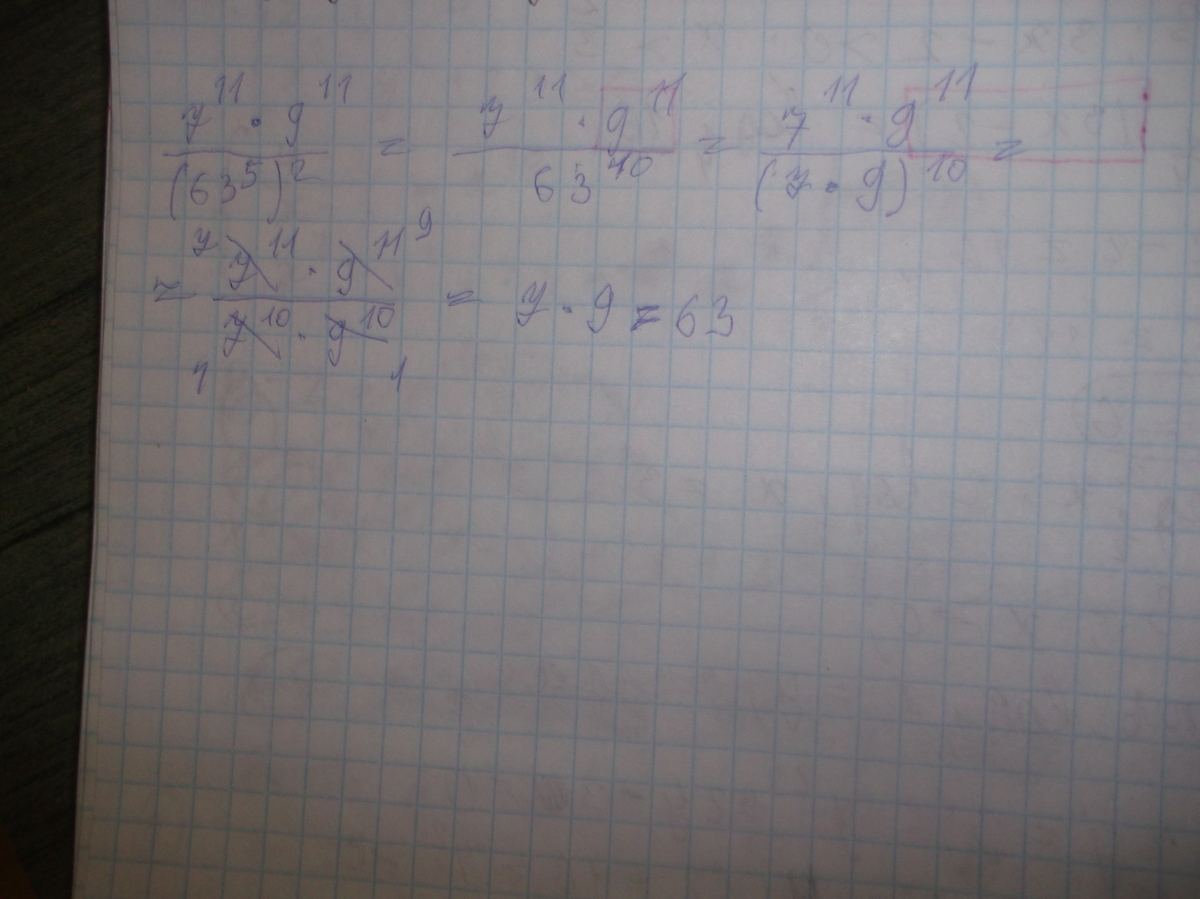 (63^5)^2 сокращается ив числителе и в знаминателе и остается только 7*9=63