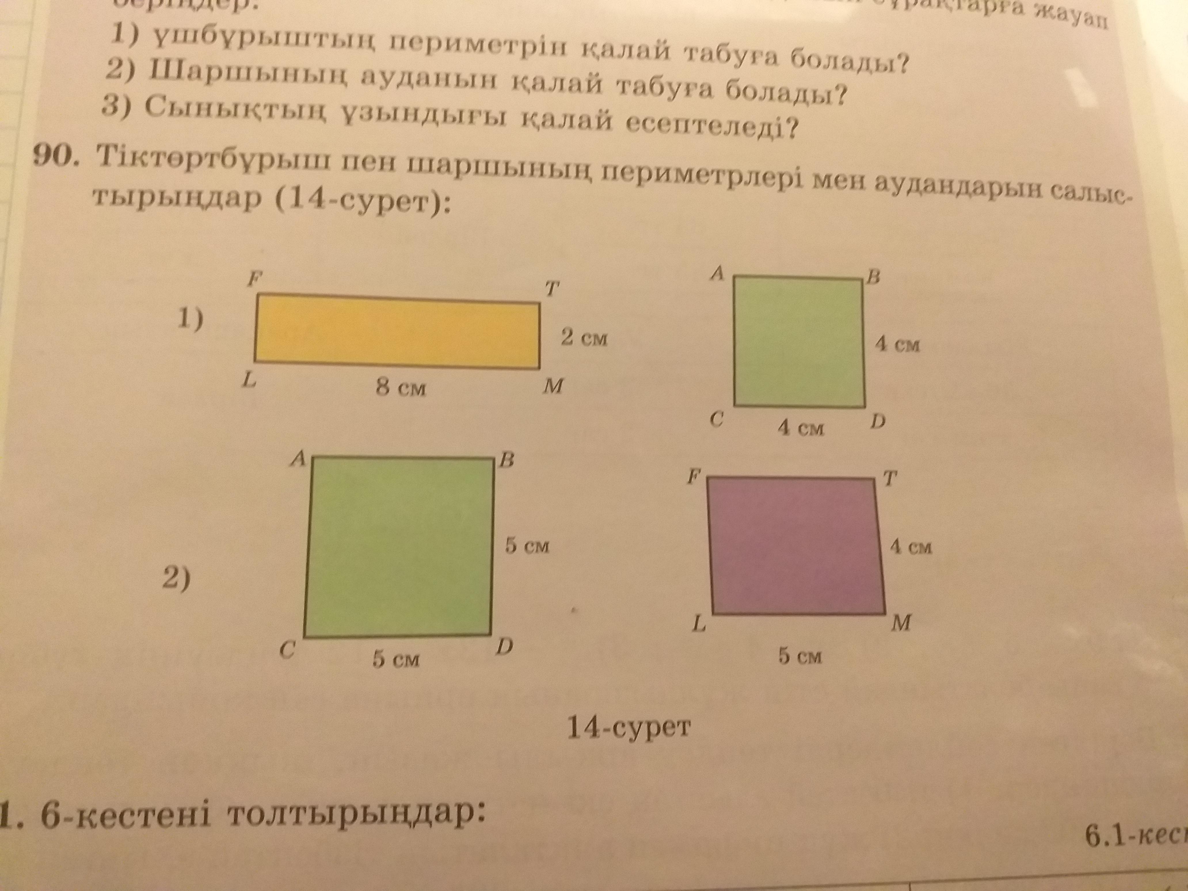1) Периметр прямоугольника = 20см, периметр квадрата =16см.