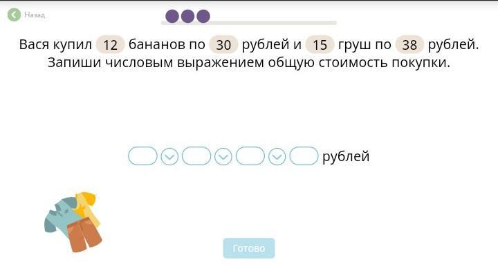 12 бананов стоят 30 рублей -> умножаем 12*30