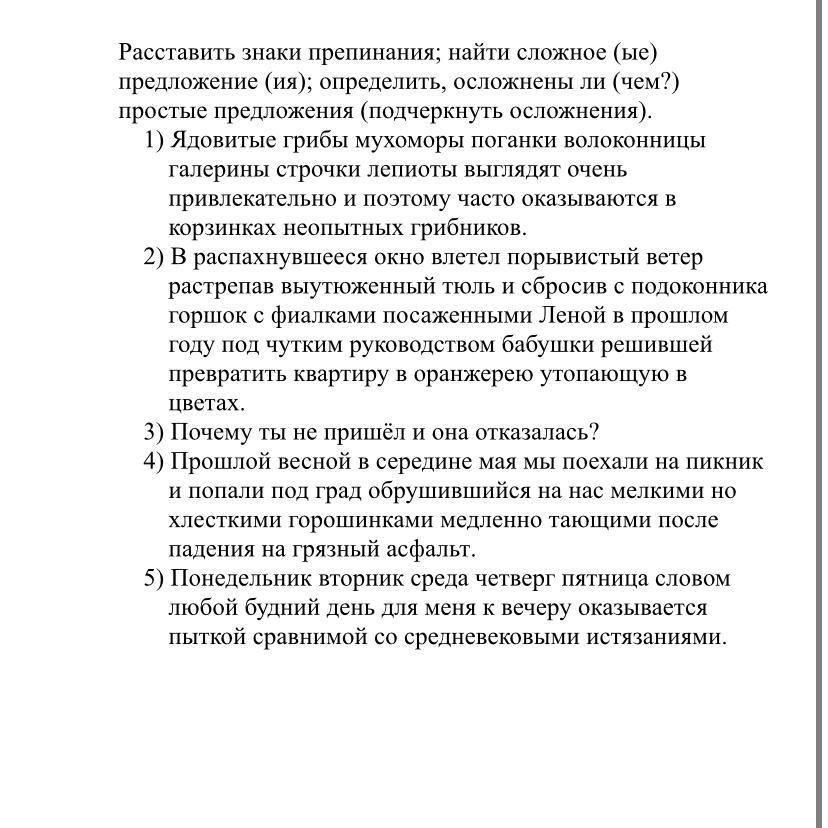 1) Ядовитые грибы - мухоморы, поганки, волоконницы, галерины, строчки, лепиоты - выглядят очень привлекательно и поэтому оказываются в корзинках неопытных грибников. - простое, осложненное однородными членами, предложение