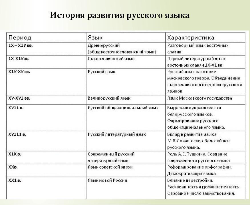 сочинение "Что мне дает знание истории развития русского языка", составить хронологическую схему развития русского языка