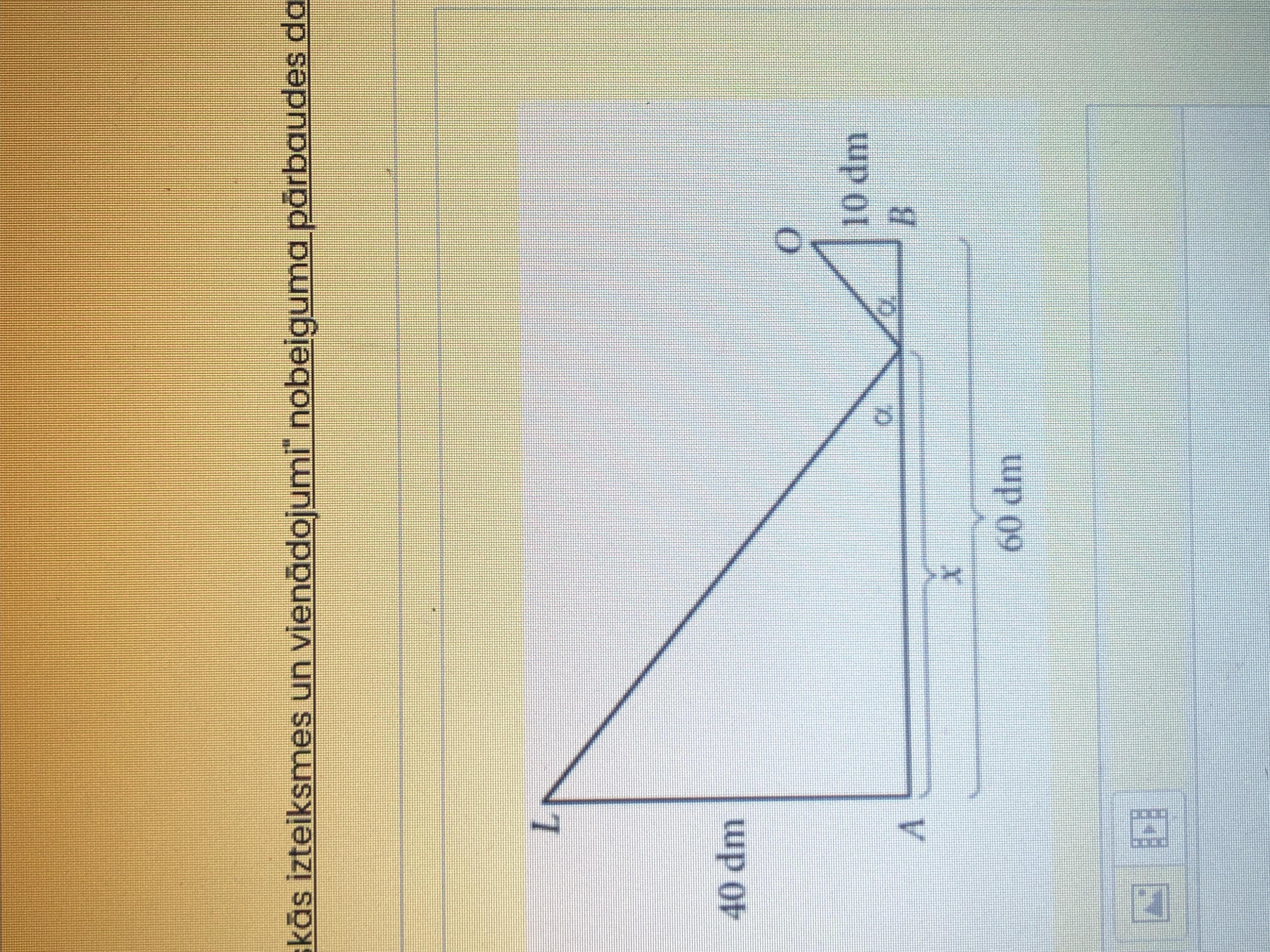 Луч света от лампы L падает на поверхность AB зеркала и отражается от объекта O. Вычислить угол a