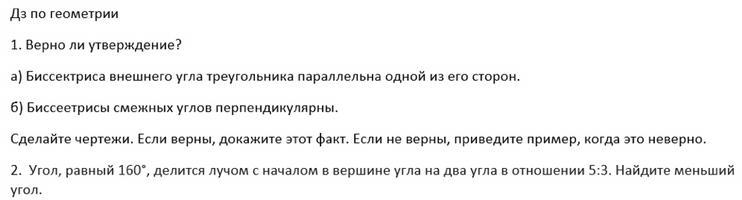 Угол равный 160 делится лучем с началом в вершине угла на два угла в отношении 5:3 найдите меньший угол..